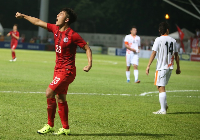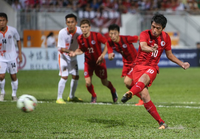 SP09.安基斯禁區內為港隊博得12碼。志誠攝