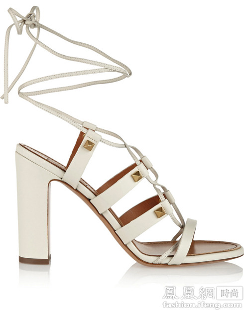 Valentino Rockstud 米白色皮革凉鞋,约7104元。