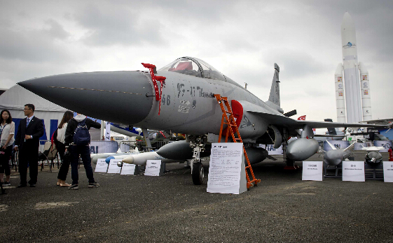 中国和巴基斯坦联合研制的“枭龙”战斗机亮相巴黎航展。