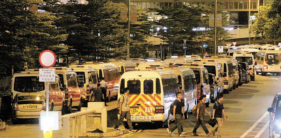 大批警车昨晚集结于立法会大楼前。