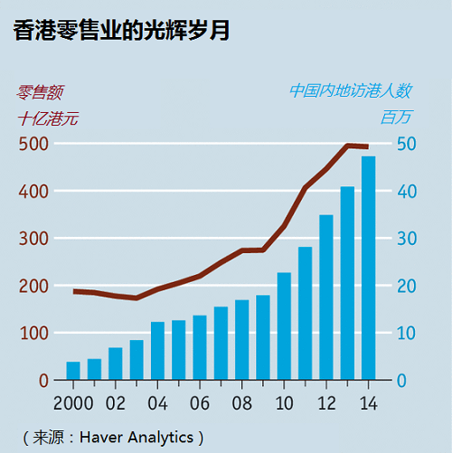 第二種擔心有一定道理。此前五年,內地訪港人數以年均21%的速度增長,而今年到目前為止只增長了6%。為整治一日多次過關的水客,深圳居民赴港政策縮緊,由“一簽多行”調整為“一周一行”,預計該政策將使赴港游降溫更加明顯。