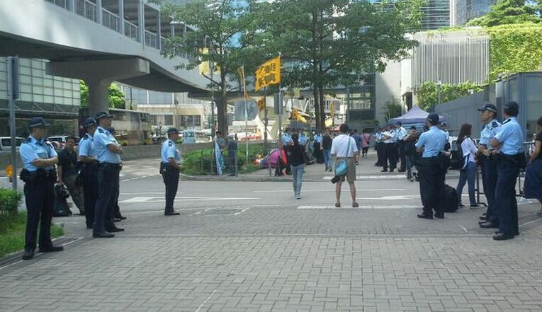 立法會午夜發出黃色警示後,大批警員在午夜時份進駐大樓內候命,特首辦外的添華道亦於昨晚起封閉,有大量警車進駐,連接海富中心及政府總部的天橋,設有多個哨崗,大批便衣及軍裝警員駐守。