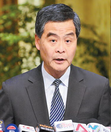 梁振英昨表示,随着普选方案被否决,众人要放下政治争拗