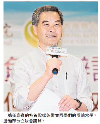 就比赛辩题「香港土地房屋发展如何作出取舍?」特首跟同学们分享政府在房屋政策上的重点和最新状况时指出,完全明白楼价高企、土地供应不足等问题一直困扰着香港市民,唯有增加土地和楼房供应,方可解决香港的房屋问题。
