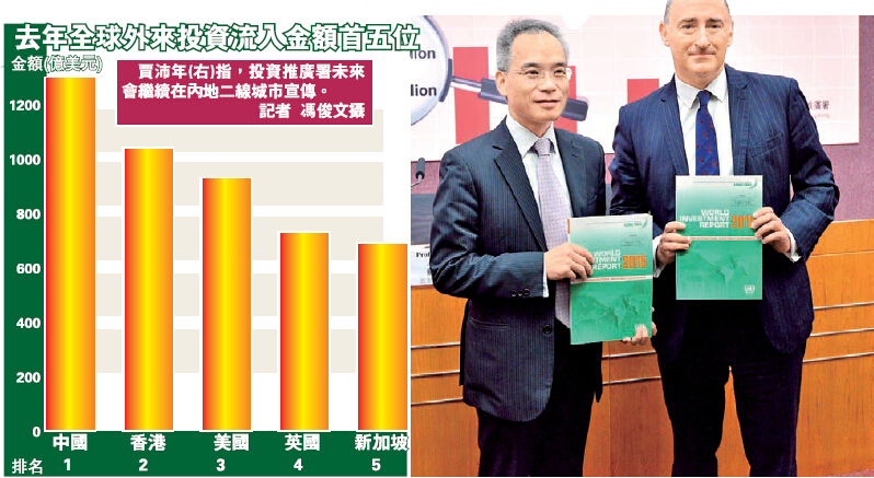 【香港商报网讯】记者郑达伟报道:尽管本港政治争拗不断,但本港完善的投资环境仍深受世界各地资金青睐。联合国贸易及发展会议发表的《2015年世界投资报告》指出,香港去年FDI(外商直接投资)的金额录得强劲升幅,首次名列全球第二。而香港去年ODI(对外直接投资)金额为1430亿元,也是全球排名第二。