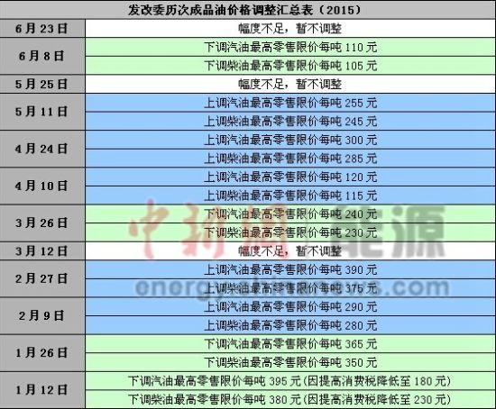 2015年歷次成品油價格調整匯總