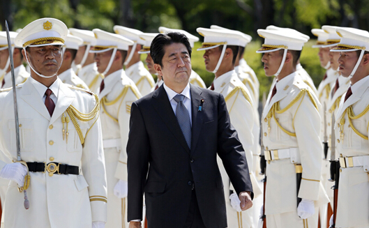 图为日本首相安倍晋三2013年9月12日视察日本自卫队/美联社