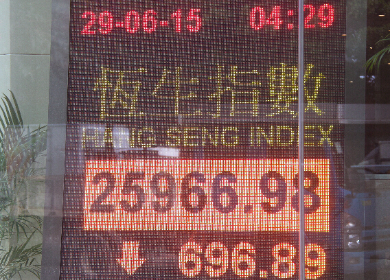 受大陆股市疲弱影响,香港恒生指数29日收盘下跌696.89点或2.61%,报收25966.98点。中央社