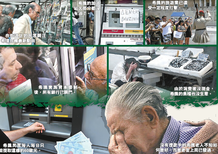 而在周一,約1.7萬人走上雅典及第二大城市塞薩洛尼基街頭,表示要在即將舉行的全民公投中投下反對票,并且痛斥國際債權人「敲詐」。有民眾表示,希臘民眾已作出很多犧牲,他關注的不是歐元區,而是確保下一代有尊嚴地活著。容克曾警告希臘人稱,不應因為害怕死亡就選擇自殺,并力促投下贊成票,因為「反對票等同向歐洲說不」。不過也有飽受資本管制措施影響的希臘人希望一切盡早結束。