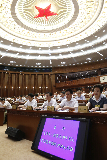 十二届全国人大常委会第十五次会议7月1日经表决通过了全国人大常委会关於实行宪法宣誓制度的决定,这标志着中国以立法形式正式规定实行宪法宣誓制度。