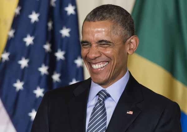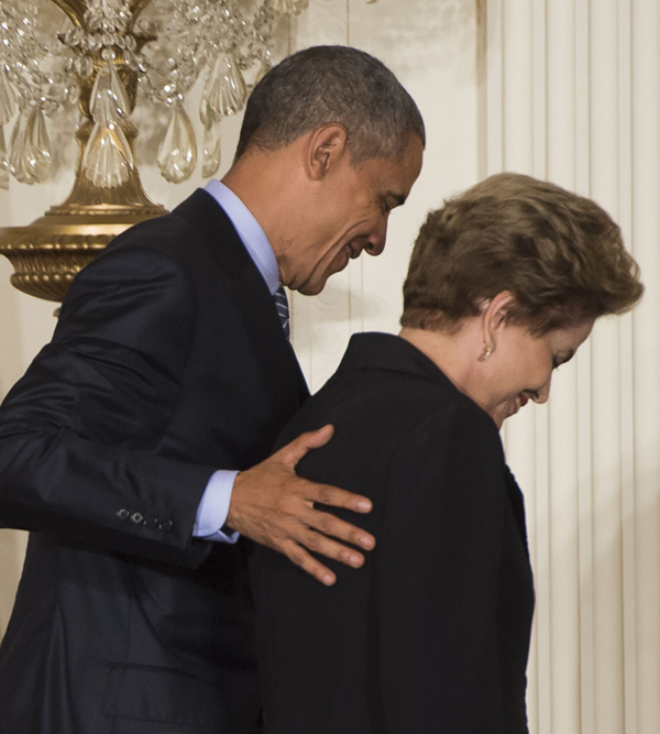 6月30日,在美國華盛頓,美國總統奧巴馬(左)與巴西總統羅塞夫在出席聯合記者會后離開。新華社/法新