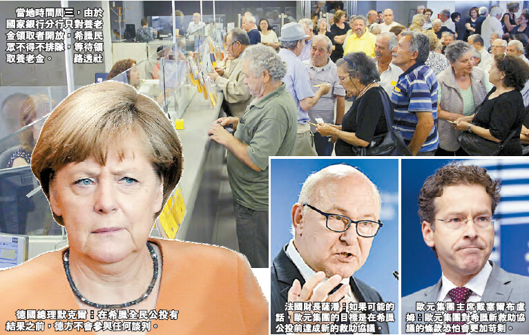 目前尚不清楚電話會議能取得多少成果。此前德國總理默克爾已斷然拒絕在周日公投前進一步舉行相關談判。法國財長薩潘也承認,達成協議之路比想像中的更加艱難復雜,歐盟中那些已經經歷過痛苦改革的較小國家現在對希臘采取最嚴苛的態度。薩潘稱,歐元集團的目標是在公投前達成協議,如果可能的話。而大家也將堅持到最后一分鐘,看看是否可能達成一份協議,從而為希臘回歸穩定鋪平道路,并安撫歐洲和全球市場。不過,如果希臘不接受債權人的提案導致債務協議未達成,那麼希臘將有可能對其他債權人的債務違約,這就意味著其將引發不可預知的后果,希臘也存在退出歐元區的可能性。