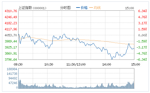 【香港商報網綜合報道】今日早盤,滬指小幅高開,盤中金融股拉升,震蕩走高站上4000點后沖高回落,盤中再度恐慌跳水,十點左右直線拉升百點震蕩翻紅,臨近午盤再度沖高回落;午后開盤震蕩走低,盤中跳水破3900、3800逼近3700點再創本輪調整新低,再現千股跌停,尾盤中國石油、中國石化、中信銀行沖擊漲停護盤,滬指震蕩回升跌幅收窄,全天劇震7.03%,兩市近1500股跌停。