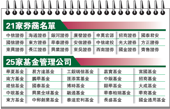 一、21家證券公司以2015年6月底淨資產15%出資,合計不低於1200億元,用於投資藍籌股ETF(交易所交易基金)。