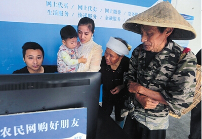 6月18日,湖北省恩施土家族苗族自治州,宣恩縣高羅鄉一網店店員為村民在網上購買生活用品。