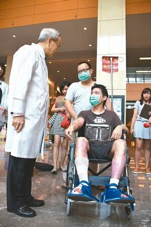 亞東醫院院長朱樹勛說,收治陳柏璋時,他全身20.8%燒燙傷,超過20%就屬重癥傷員,經11天治療,已可順利進食,也可以走路,昨評估后準予出院。他期盼陳柏璋出院,能帶給還在和死神拔河的傷者勇氣,戰勝病痛。