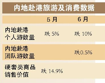 據了解,除個人游外,團隊旅游也在下降之列。受此影響,6月1日至28日,整體訪港旅客下跌1.9%,其中內地旅客下跌0.5%。