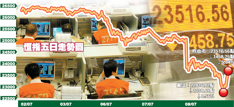 恒指一度瀉2100點 市值蒸發1.5萬億