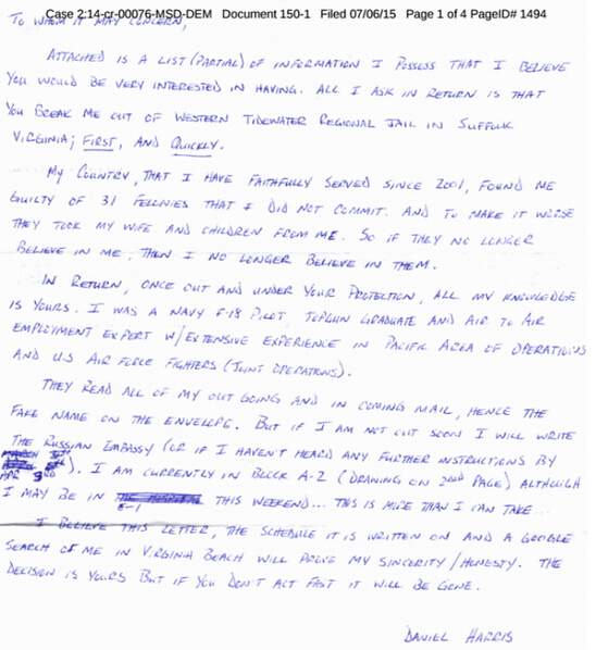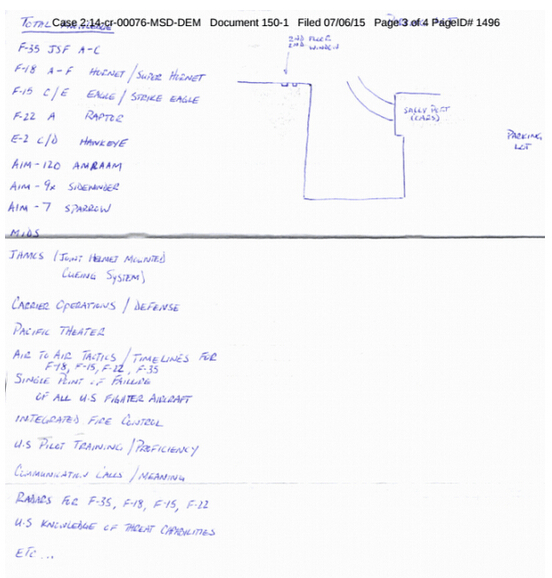 據報道,這封信的內容非常勁爆。信中說”以下附上我所掌握的部分信息列表,我相信你們會非常有興趣掌握。我只求你們將我救出。”在他所列出的機密信息中,包括F-35、F-22等美國海空軍多種機型,以及航空母艦的相關信息。