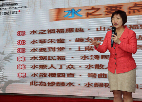 圖為2014年11月1日,洛陽一樓盤邀請麥玲玲女士到現場,講解居家風水。