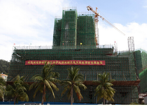 圖為2013年1月5日,海南三亞一棟在建大型樓盤懸掛著“熱烈歡迎香港著名風水學大師宋韶光先生來我項目觀摩指導”的橫幅,十分惹眼。