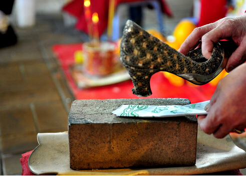 香港街頭還有神婆“打小人”的場面。“打小人”需要神婆將小人的名字寫于紙上,再將紙片放在磚塊上,用力用鞋子敲打紙片。“打小人”已經被香港民政事務局列為“非物質文化遺產”之一。