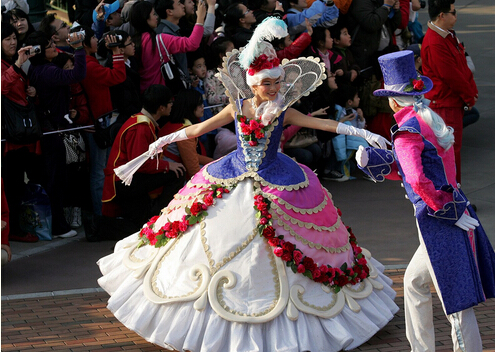 圖為2011年1月21日,迪士尼樂園內在進行表演。