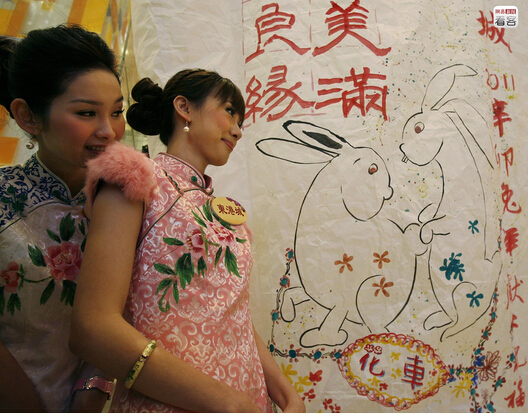 圖為2011年1月13日,兩位香港女士在祈求“美滿良緣”活動現場。