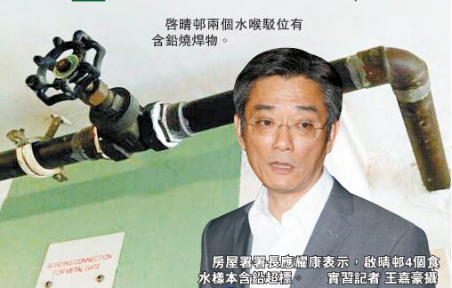 【香港商報訊】實習記者王嘉豪報道:啟德啟晴恏食水含鉛量超標事件擾攘近一周,終有官方正式回應!房屋署署長應耀康昨晚在記者會上指出,經政府化驗后,發現抽驗水辦樣本中,有4個樣本含鉛量超出世衛標準,其中一個更超標逾1倍。醫管局的專家指出,現時房署就啟晴恏水辦驗出的含鉛量,在正常飲用下導致急性中毒的風險極低,呼吁住戶不用太擔心。但為安全計,房署昨晚起會為恏內有孕婦、6歲以下小朋友和餵哺母乳者的家庭提供樽裝水,直至問題得到解決為止。