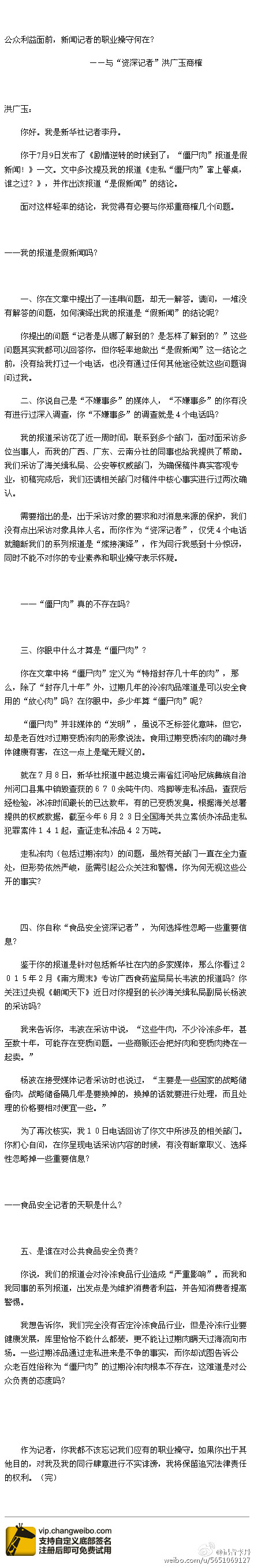 新華社記者李丹回應“僵尸肉假新聞”事件