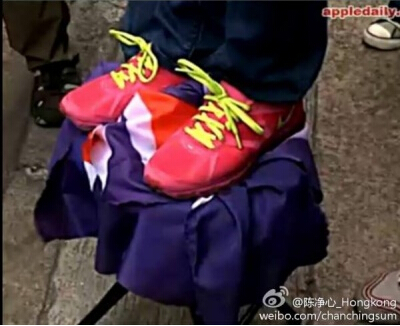 陳凈心將“港英旗幟”踩在腳下(來源:陳凈心2014年5月5日微博)