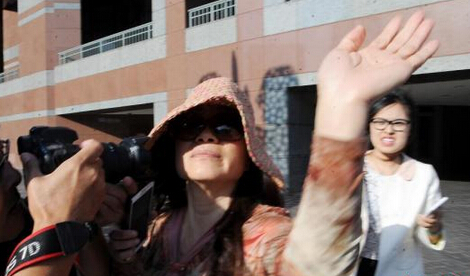 外逃贪官乔建军前妻赵世兰5月在洛杉矶出庭,离开法庭时阻止记者采访拍摄。 中新社