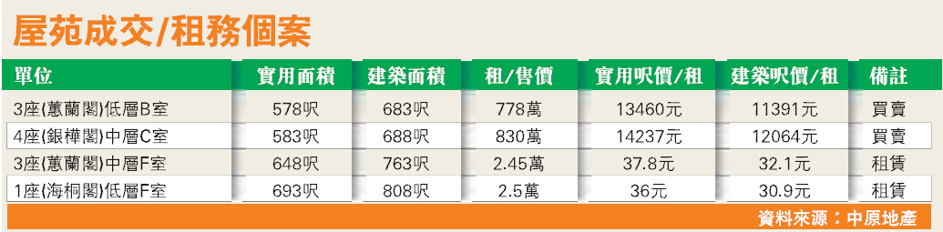 至於租務市場,馮澤源指,屋苑最近成交的租務個案,實用呎租約36元,建築呎租約30元。他表示,與同區屋苑比較,新城市廣場的呎租就相對沒有那麼進取,主要由於屋苑提供的多為3房大單位,而附近屋苑租客多為學生客,細單位往往更適合學生的口味,如鄰近的沙田中心,其實用面積約288平方呎的細單位,呎租分分鐘可達47至48元。