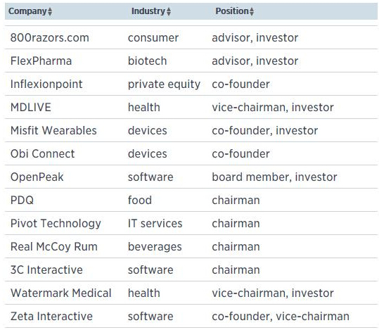 斯卡利聯合創辦了可穿戴設備初創公司Misfit Wearables,這家公司在去年12月剛融資4000萬美元。本周三,大數據營銷軟件公司Zeta Interactive宣布募集到1.25億美元資金,斯卡利同時也是這家公司的聯合創始人、董事會副主席。