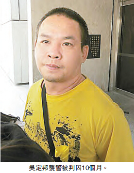 【香港商報网訊】記者馮仁樂報道:去年違法「占領運動」期間,有3名警務人員在金鐘遇襲,案中施襲的無業漢吳定邦,昨在九龍城裁判法院被判囚10個月,是涉及「占中」襲警案件中,迄今判刑最重的一宗!裁判官蘇惠德裁決時直斥被告無悔意,短時間內接連襲擊警員是目無法紀;又形容被告毆打倒在地上的警員,是失控的暴徒行為,裁定被告兩項襲警及1項普通襲擊罪成立,3項罪名分期執行。