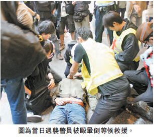 案情透露,去年12月1日「占領運動」期間,3名便衣探員完成工作后,從金鐘占領區前往海富中心,欲乘港鐵返回警署,但途經金鐘海富中心出入口期間,被大批示威者包圍及襲擊,其中一人不支倒地,39歲被告吳定邦當時跳起用胸口撞向一名警員,并揮拳打其左頸,然后再騎上另一倒地警員腰間揮拳毆打,令警員一度失去知覺。其后有督察到場增援,向另一名被告30歲的蘇永健調查時,遭對方拒絕并用手撥開,被擊中左臉。