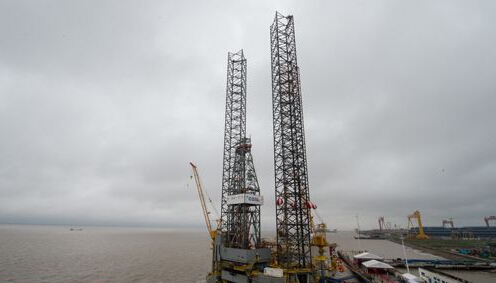 資料圖:2014年6月26日,“中國制造”海上自升式鉆井平臺“凱旋一號”在江蘇完成交付,技術水平和建造質量處于全球領先水平,將在近日轉場至我國東海,正式投產運營。 新華社記者李響攝