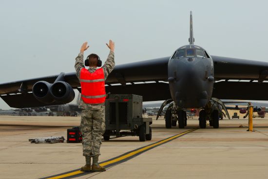 美國空軍巴克斯代爾基地的B-52H飛機準備起飛執行BAAD任務