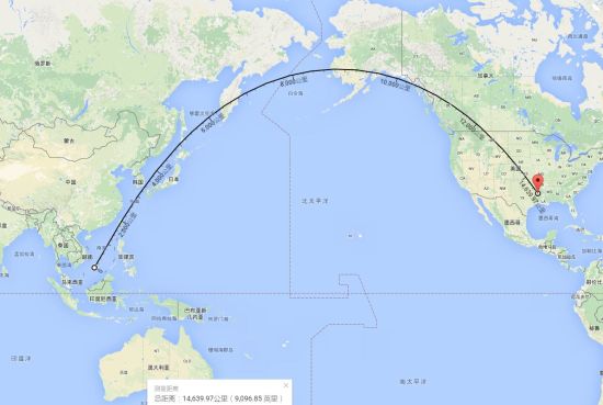 從美國巴克斯代爾基地飛往我國南沙群島距離與飛往澳大利亞直線距離相似