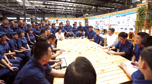 習近平在長春一東股份公司班組園地與職工座談。他希望大家開門見山、一吐為快,這有利於聽真話、接地氣;並表示把國企做大做強,必須抓好創新、品質、管理;推進國企改革,要有利於國有資本保值增值,提高國有經濟競爭力,放大國有資本功能。新華社