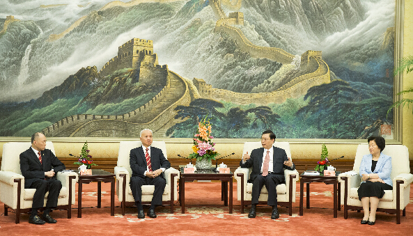 張德江在人民大會堂會見中華總商會訪京團一行。