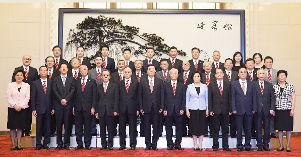 中華總商會訪京團与張德江委员长合影。