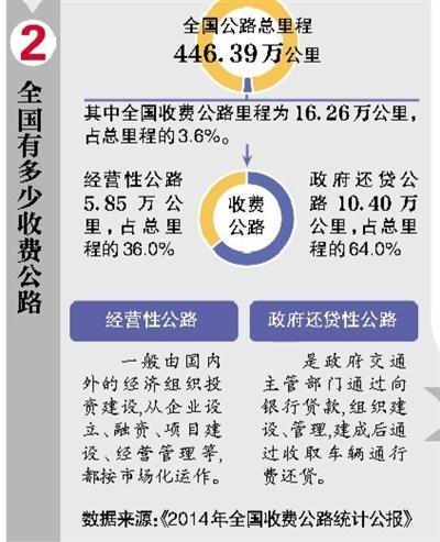 國家行政學院教授王偉:我們國家公路發展的稅收主要是兩種,一是車購稅,主要用于公路建設;二是成品油消費稅,主要用于非收費普通公路養護。而且成品油消費稅并不是全部都用于普通公路養護,中間很大一部分是分給了航道養護、運輸管理、環境保護和新能源發展,甚至還要分給農民的農業機械柴油和漁民漁船柴油的補助。所以在這種情況下,收費公路自身的養護管理、債務償還等,就需要通過車輛通行費予以保證。