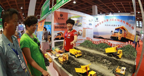 7月22日,与会代表在参观矿用机械。当日,2015中国(包头)第二届国际装备制造业博览会在内蒙古自治区包头市举行。中国、俄罗斯、蒙古国100多家企业展出重型工业设备、新能源电力、3D打印技术、机器人、太阳能热能利用系统、农业机械等上百种产品。新华社记者 贾立君 摄