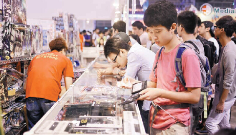 至於結伴到動漫電玩節的梁同學和陳同學,則各自花費約800元購買心儀的高達模型,他們异口同聲表示,昨日一游「并未夠喉」,所以計劃於今天或明天再進場「掃貨」,目標包括「Iron Man」和「海賊王」等人型figure,梁同學更指,自己的購物上限為3000元。而男生愛電子游戲機和模型,女生卻另有所好,周小姐就動用約300元資金,購入杯、文件夾和海報等周邊商品,她更揚言:「有合適濓(商品)會繼續買!」