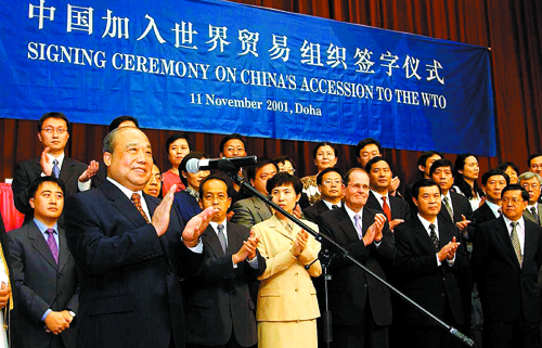 然而,14年過去了,最擔心受衝擊的中國金融業和農業不但沒有如當初人們預期般地遭受重大打擊,反而表現出了強勁的生存能力和獨特的競爭力。在加入WTO之後,中國經濟逐漸與國際市場融合,成為世界上經濟發展最強勁、表現最突出的經濟體。在這14年裏,中國不斷超越英、法、德、日,成為世界第二大經濟體,而且已經成為世界第一大貿易國和第一大吸收外來直接投資國,以及第二大對外直接投資國。根據美國《財富》雜誌於北京時間22日晚發布的2015年世界500強企業名單,中國上榜企業繼續保持強勁增長態勢,達到106家,比上年度增加6家,上榜企業數量穩居世界第二,與美國上榜企業128家的數量相比僅差22家。更為引人注目的是,中國的主要商業銀行大多都進入了世界500強企業,在全球主要銀行排行榜上,中國的幾家國有商業銀行皆名列前茅。