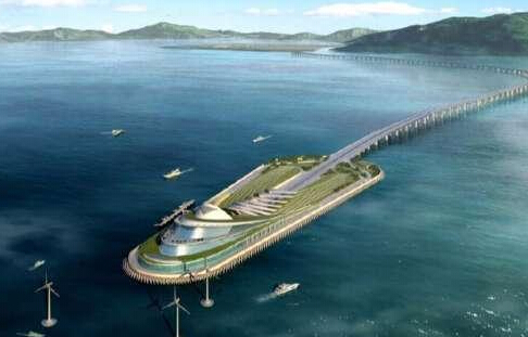 港珠澳大桥人工岛及海底隧道入口模拟图