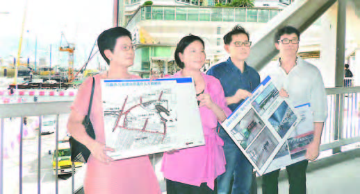 經民聯立法會議員梁美芬、民建聯區議員孔昭華,以及民主黨立法會議員黃碧雲,昨日聯同一眾政府、港鐵代表到高鐵西九龍總站工地附近,視察行人接駁設施。