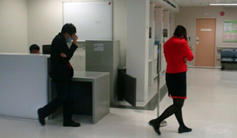 受伤空姐身穿香港航空制服