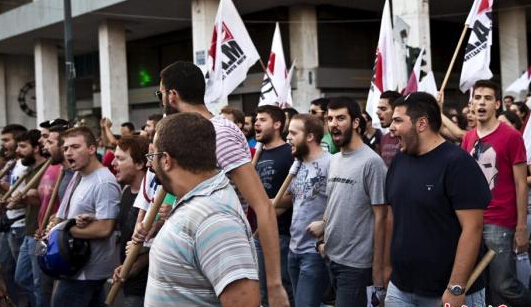 當地時間7月22日,希臘雅典,希臘民眾組織大規模反緊縮游行。 視頻:希臘股市或于今明兩日重開 來源:央視新聞